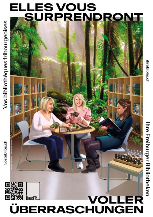 Unter diesem Slogan hat BiblioFR von April bis Juni 2023 im ganzen Kanton eine Kampagne zugunsten der Freiburger Bibliotheken durchgeführt.
